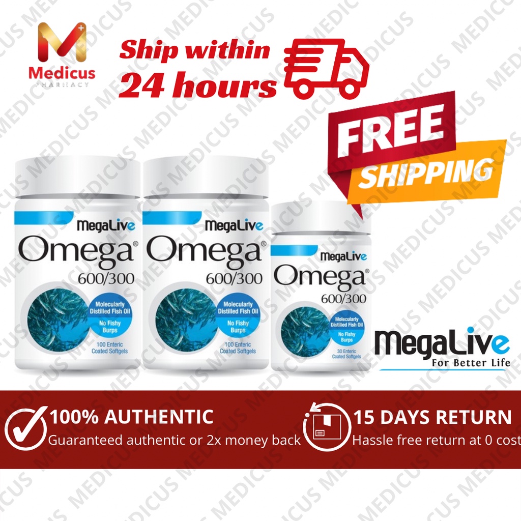 Megalive omega 600 300 bundle set 100+100+30 tablet di tokopedia ∙ promo pengguna baru ∙ cicilan 0% ∙ kurir instan. Megalive omega 600/300 is the high strength fish oil, containing 600mg epa and 300mg dha from 1200mg fish oil.